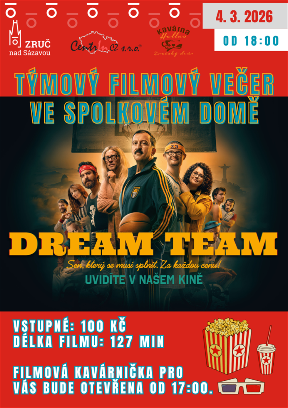 Projekce české sportovní novinky Dream Team se uskuteční od 18:00 v zasedací místnosti Spolkového domu.